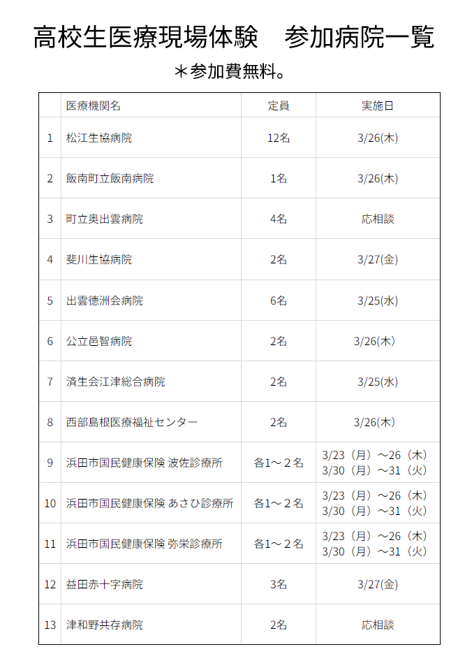 しまね臨床研修病院PR助成(募集終了)